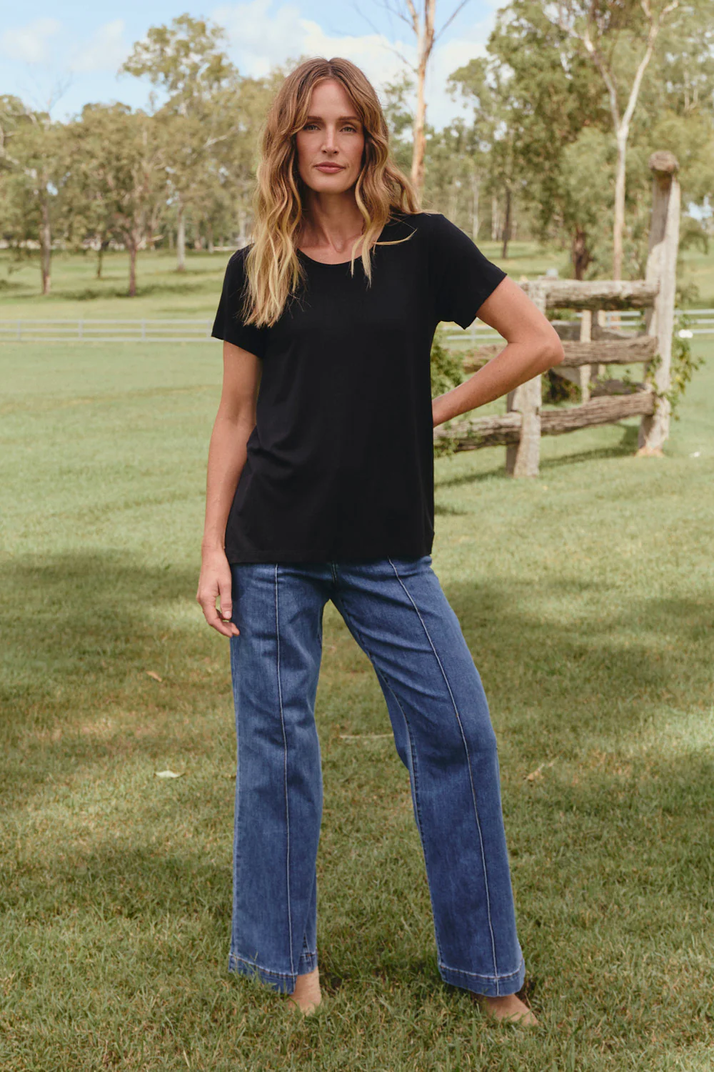 Every woman needs the perfect tee in her wardrobe. Adrift's Basics line has you covered with the Swing Tee in elegant black. The stunning swing hemline and rounded neckline mean this tee flatters women of all shapes and sizes.